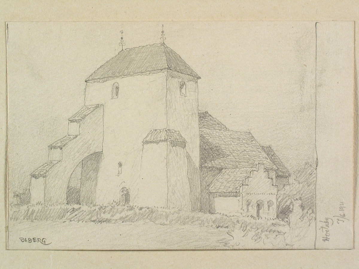 Teckning av Ferdinand Boberg. Skåne, Albo hd., Hvitaby k:a