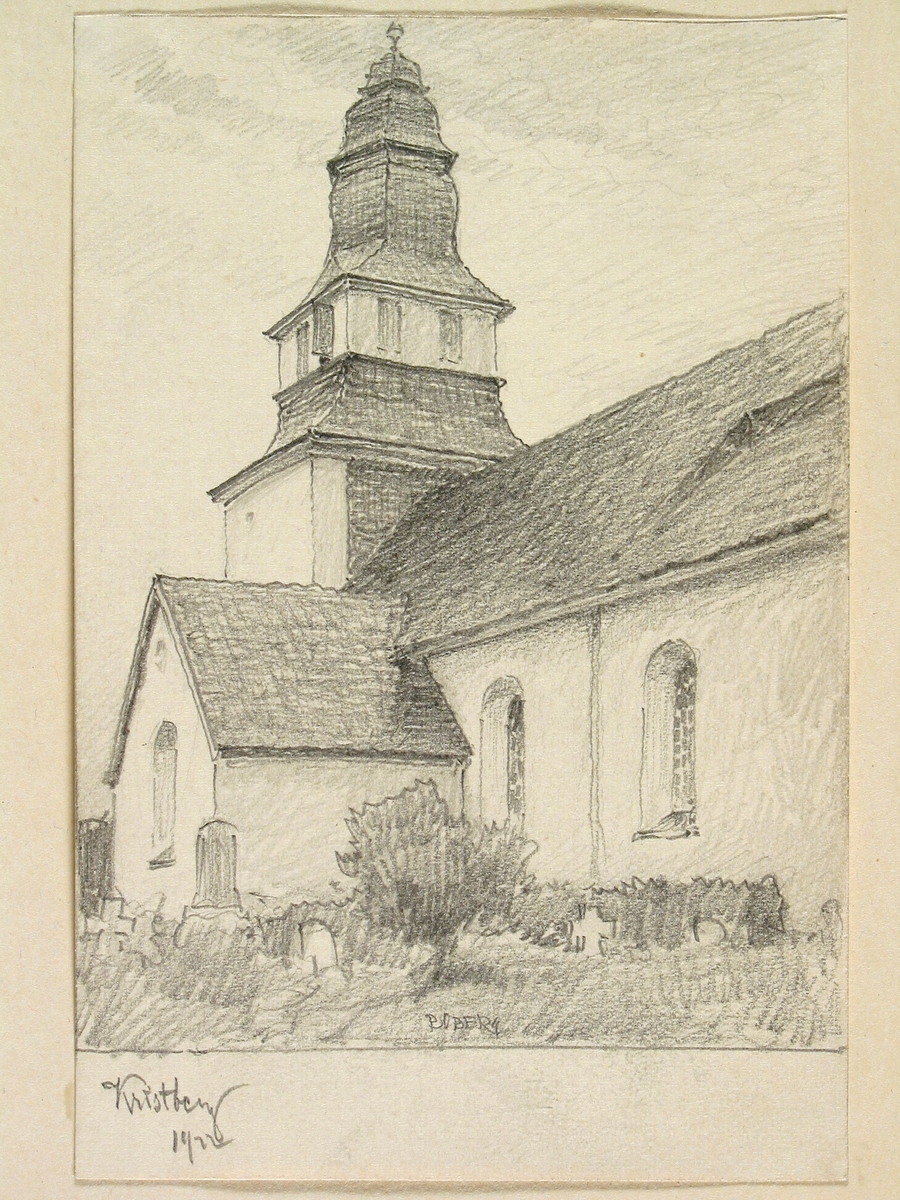 Teckning av Ferdinand Boberg. Östergötland, Aska hd., Kristbergs kyrka