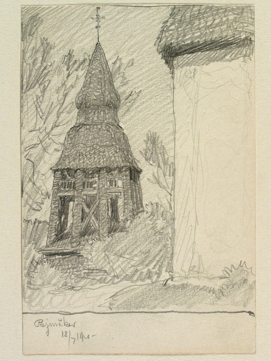Teckning av Ferdinand Boberg. Hälsingland, Bjuråkers kyrka