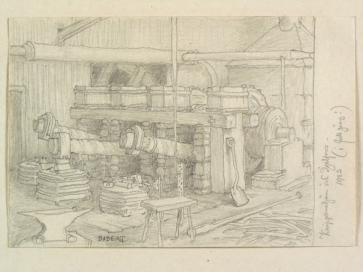 Teckning av Ferdinand Boberg. Östergötland, Finspångaläns hd., Regna sn., Igelfors