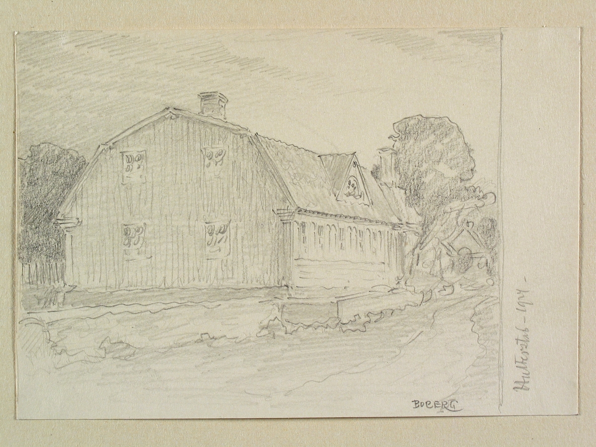 Teckning av Ferdinand Boberg. Östergötland, Vifolka hd., Mjölby sn., Hulterstad