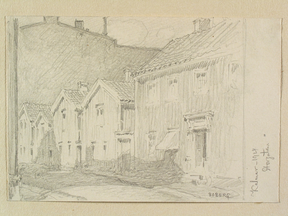 Teckning av Ferdinand Boberg. Kalmar, Storgatan