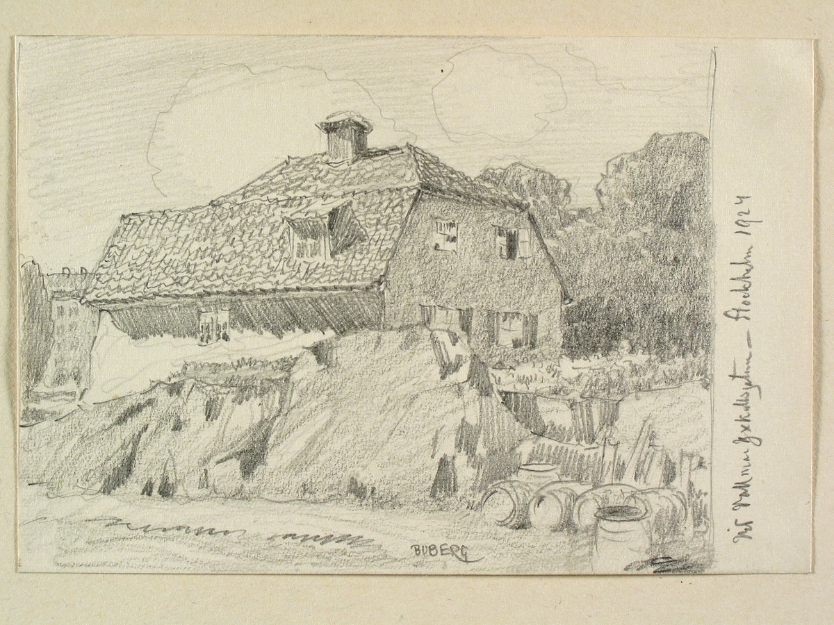Stockholm, Söder, Åt Wollmar-Yxkullsgatan.Teckning av Ferdinand Boberg.