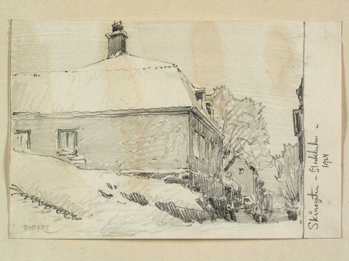 Stockholm, Skånegatan, Södermalm. Vintern 1924.Teckning av Ferdinand Boberg.
