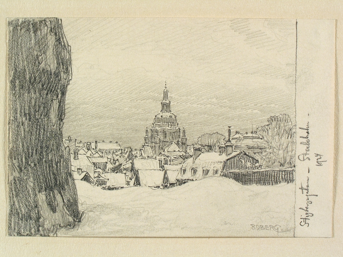 Titel: Stockholm, Söder, Stigbergsgatan, Teckning av Ferdinand Boberg.