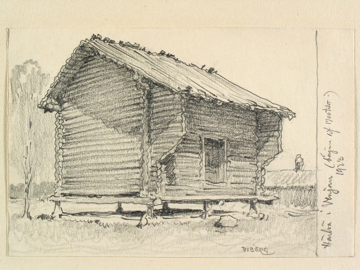 Dalarna, Venjans sn. Härbre i Venjan från tidigt 1700-tal. Teckning av Ferdinand Boberg