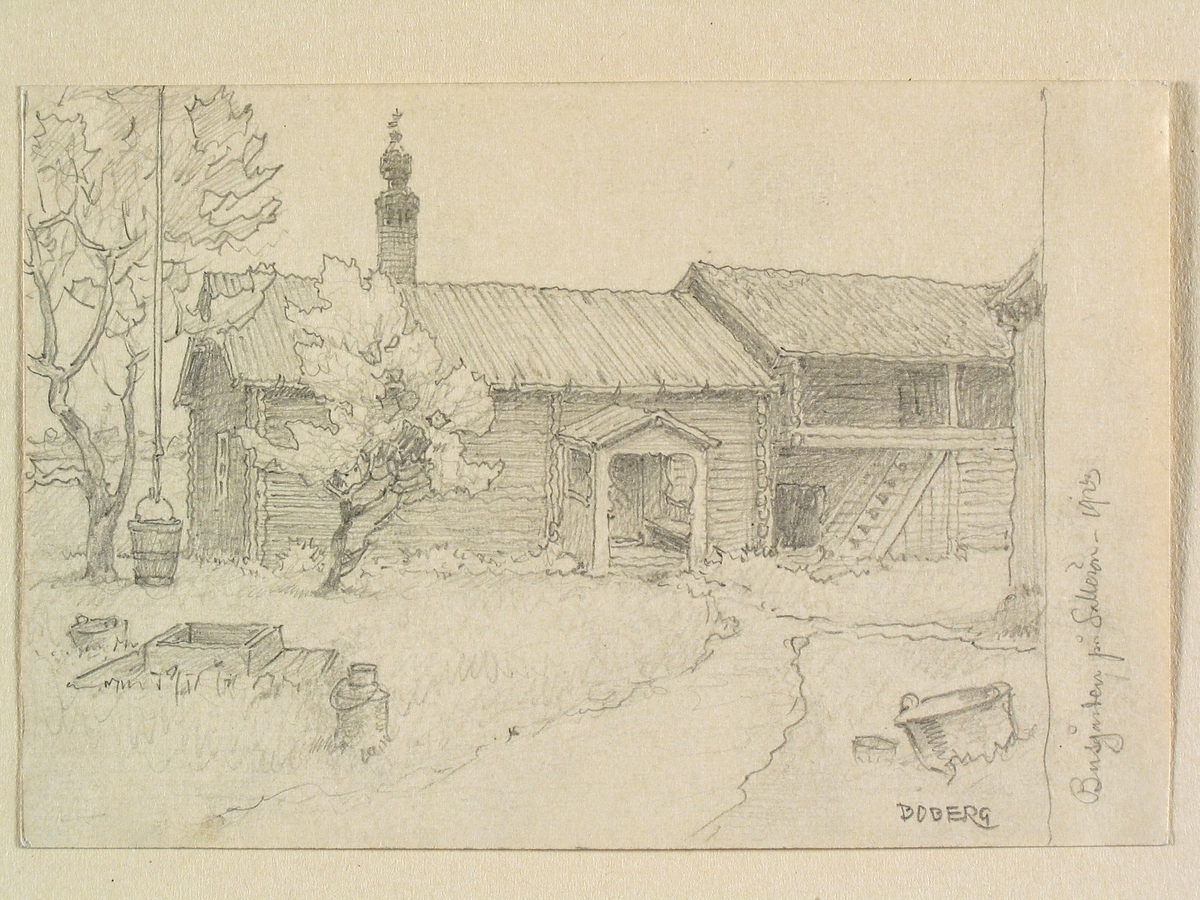 Dalarna, Solleröns sn., Sollerön, Busgården. Teckning av Ferdinand Boberg
