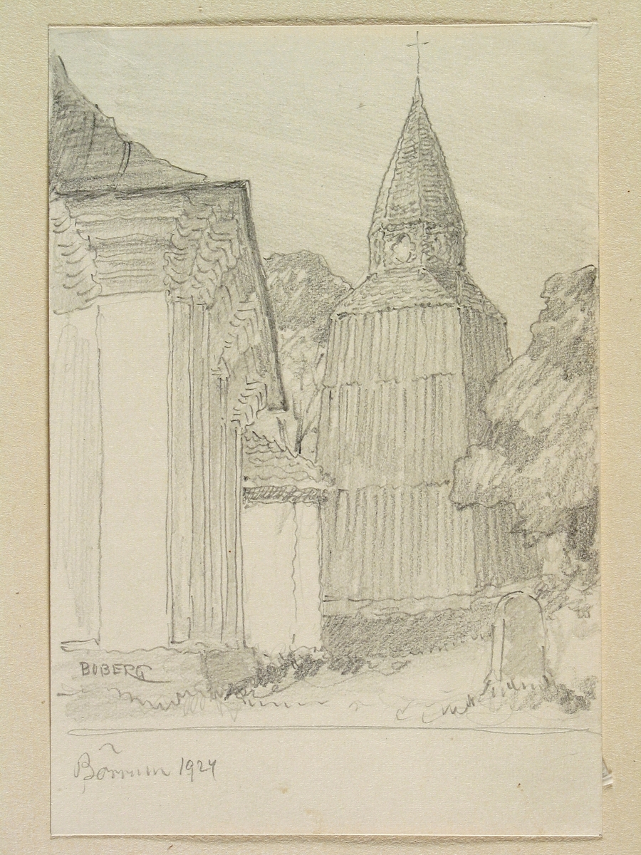 Teckning av Ferdinand Boberg. Östergötland, Hammarkinds hd., Börrums kyrka