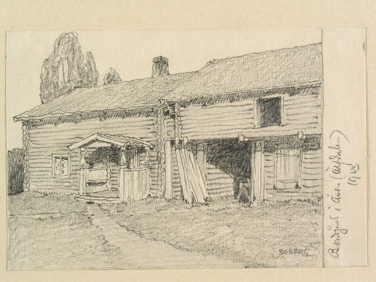 Dalarna, Älvdalens sn. "Bondgård i Åsen". Teckning av Ferdinand Boberg