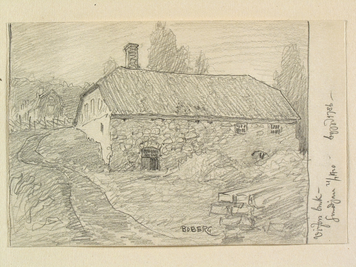 Gästrikland, Hamrånge sn. Vifors bruk, smedja byggd 1786. Teckning av Ferdinand Boberg.