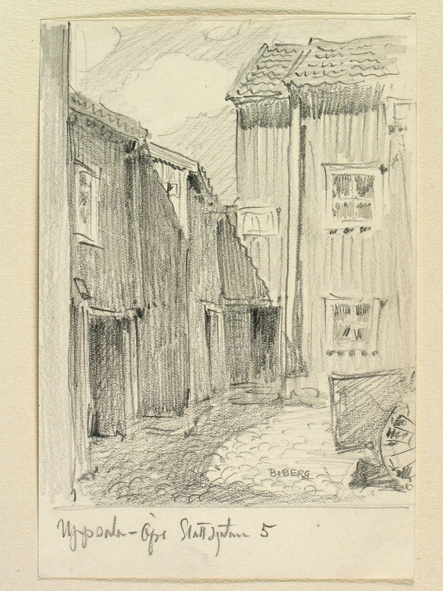Teckning av Ferdinand Boberg. Uppsala, Övre Slottsgatan 5
