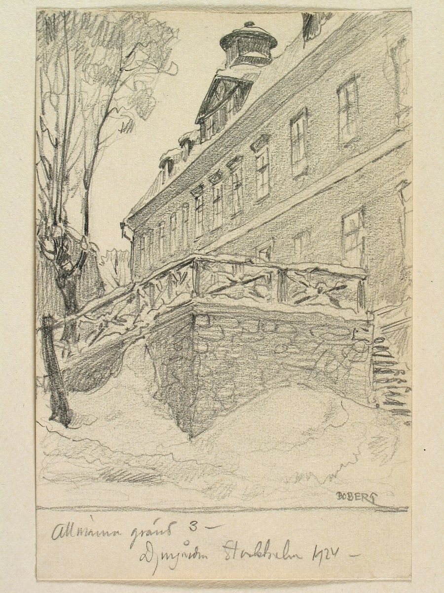 Teckning av Ferdinand Boberg. Stockholm, Djurgården, Kv. Masten, Allm. gränd 3