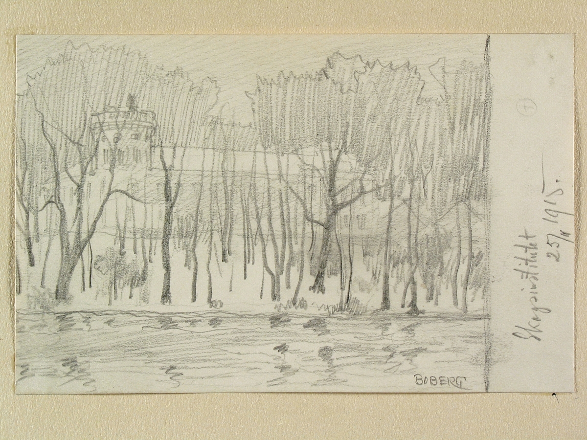 Teckning av Ferdinand Boberg. Stockholm, Östermalm, Kv. Legationssekreteraren, Strandvägen 58, f.d. Skogsinstitutet