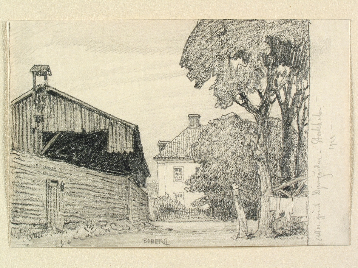 Teckning av Ferdinand Boberg. Stockholm, Djurgården, Kv. Allm. gränd