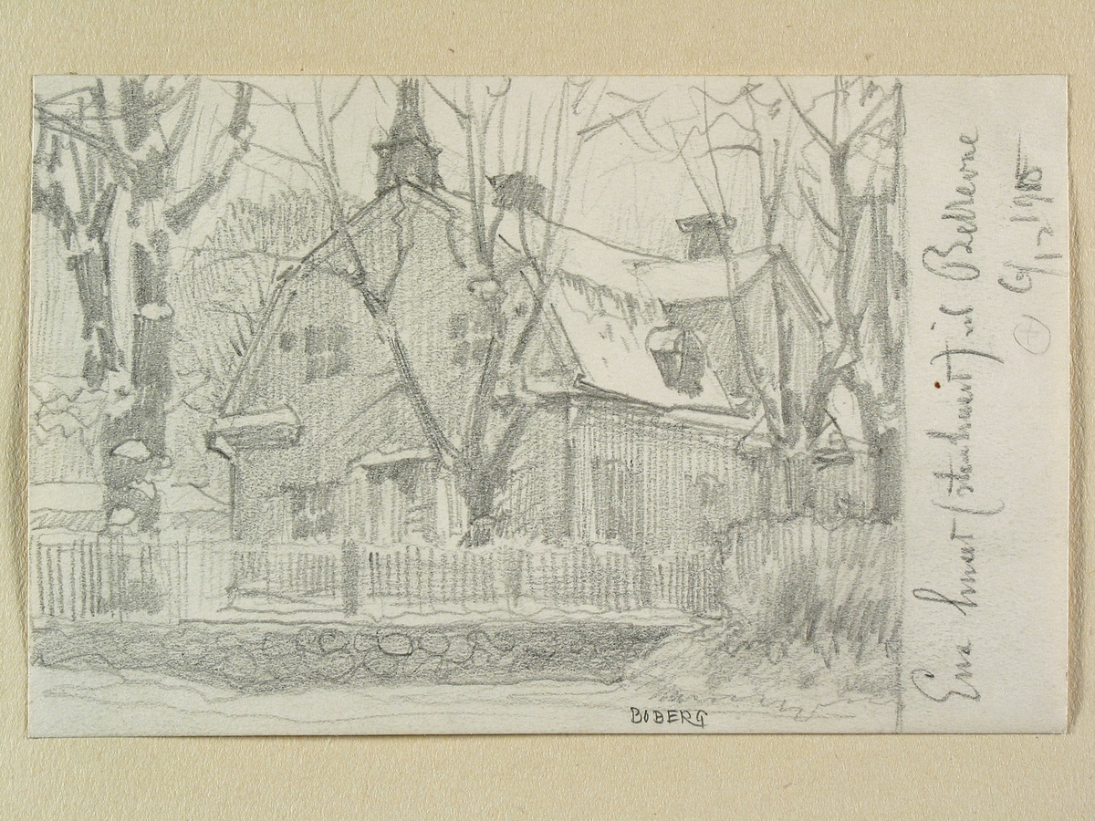 Teckning av Ferdinand Boberg. Stockholm, Norrmalm, Kv. Kråkvilan 24, Roslagsgatan 57, Bellevue