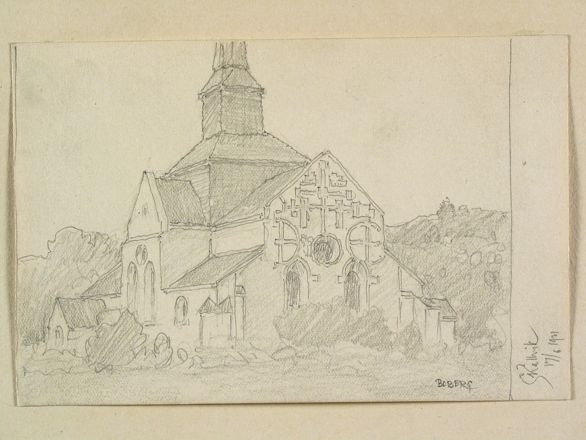 Teckning av Ferdinand Boberg. Östergötland, Hammarkinds hd., Skällviks kyrka