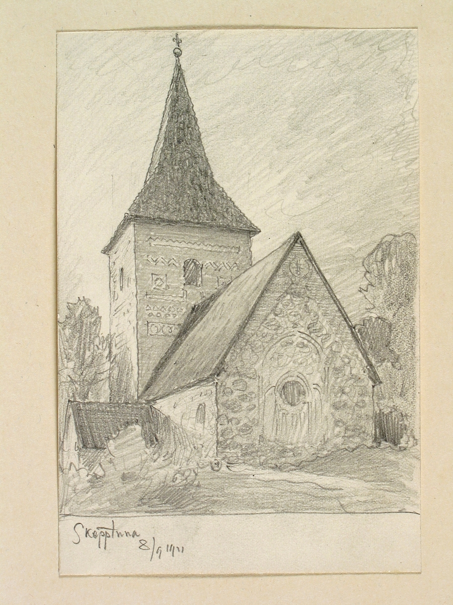 Teckning av Ferdinand Boberg. Uppland, Seminghundra hd., Skepptuna kyrka