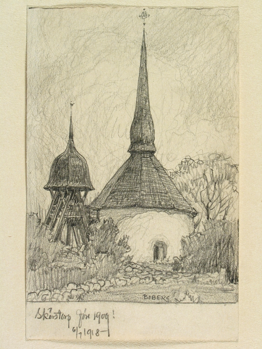Teckning av Ferdinand Boberg. Västergötland, Vartofta hd., Skörstorps k:a