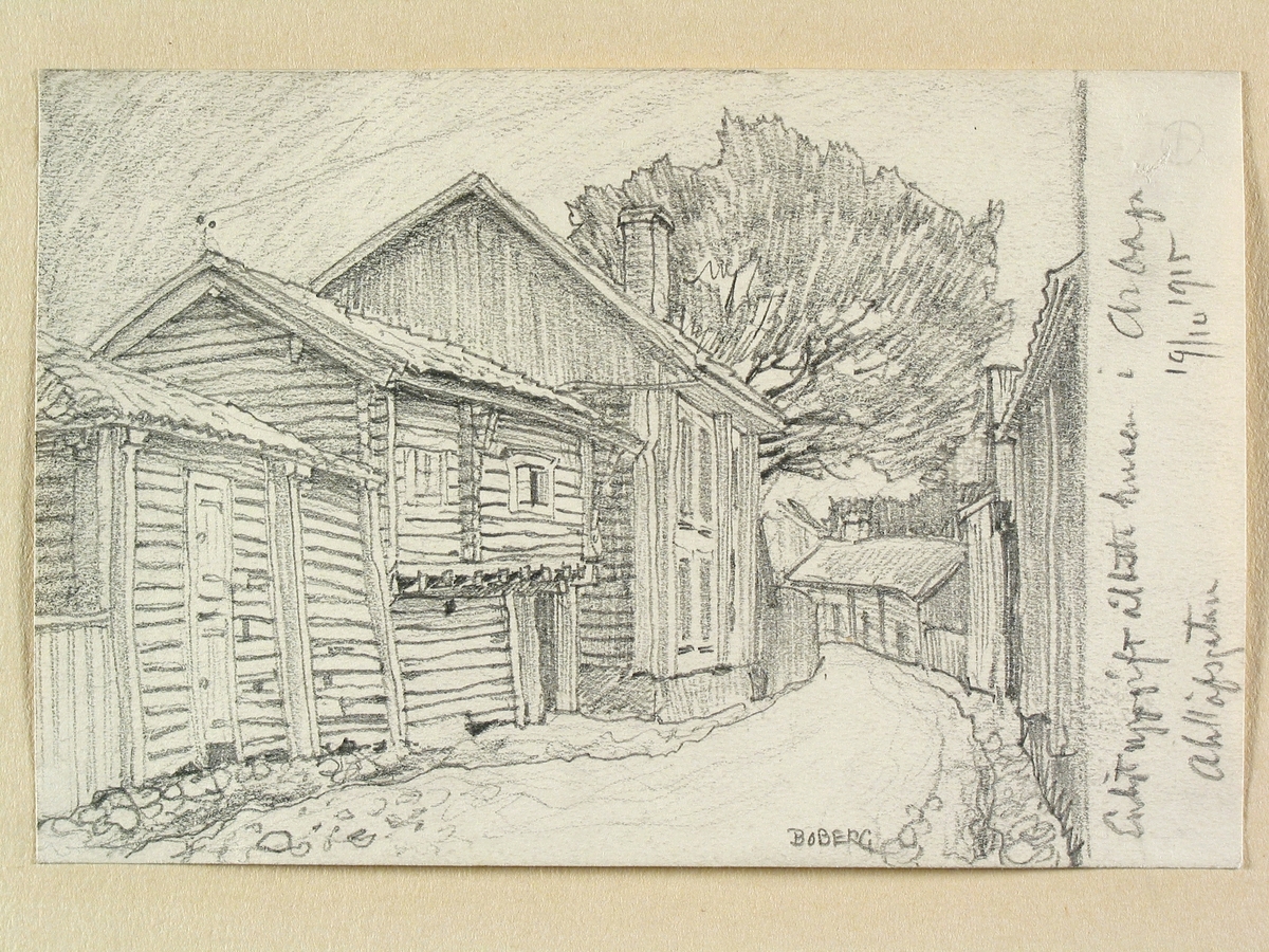 Titel: Teckning av Ferdinand Boberg. Arboga, Ahllöfsgatan