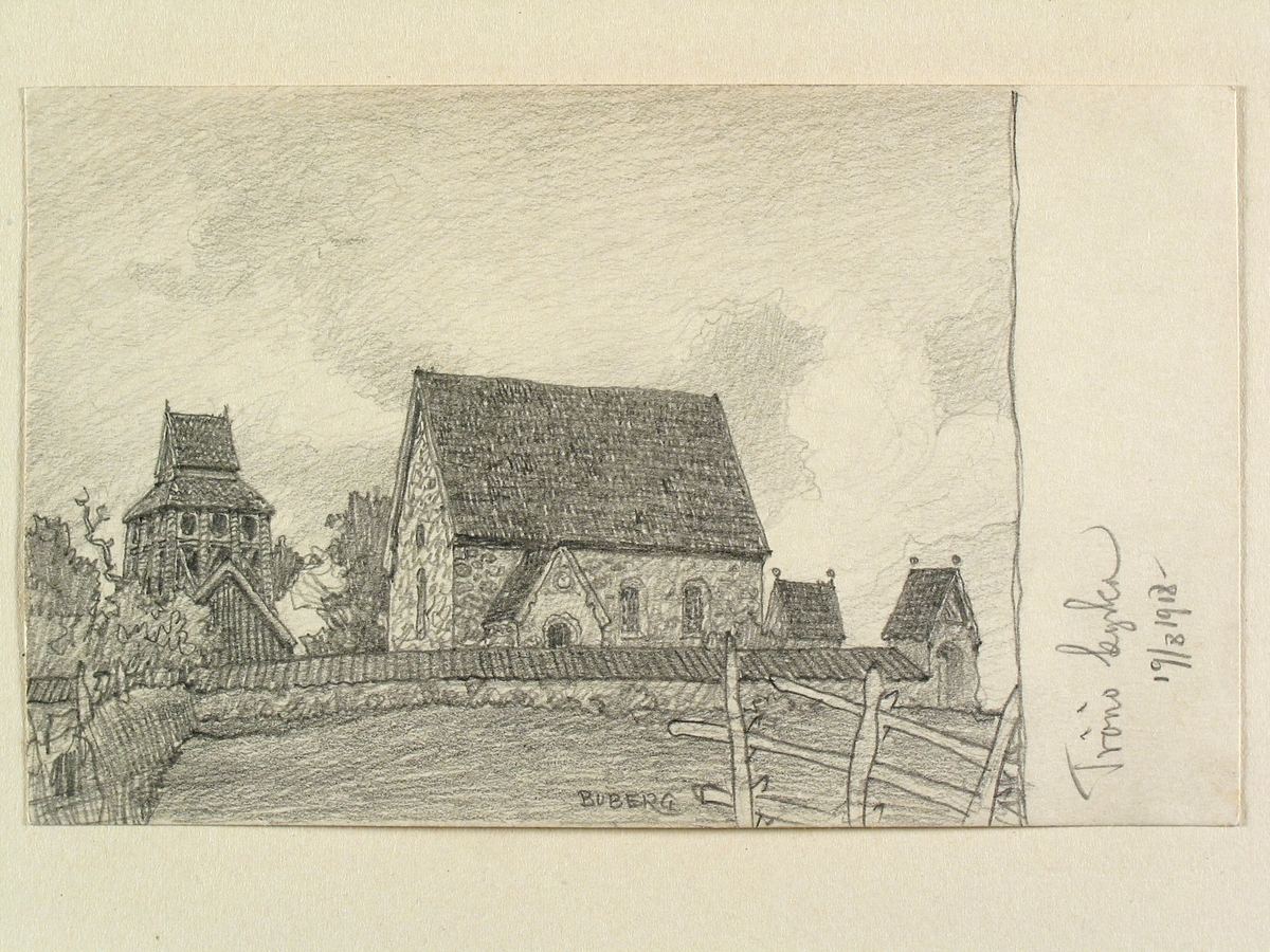 Teckning av Ferdinand Boberg. Hälsingland, Trönö kyrka