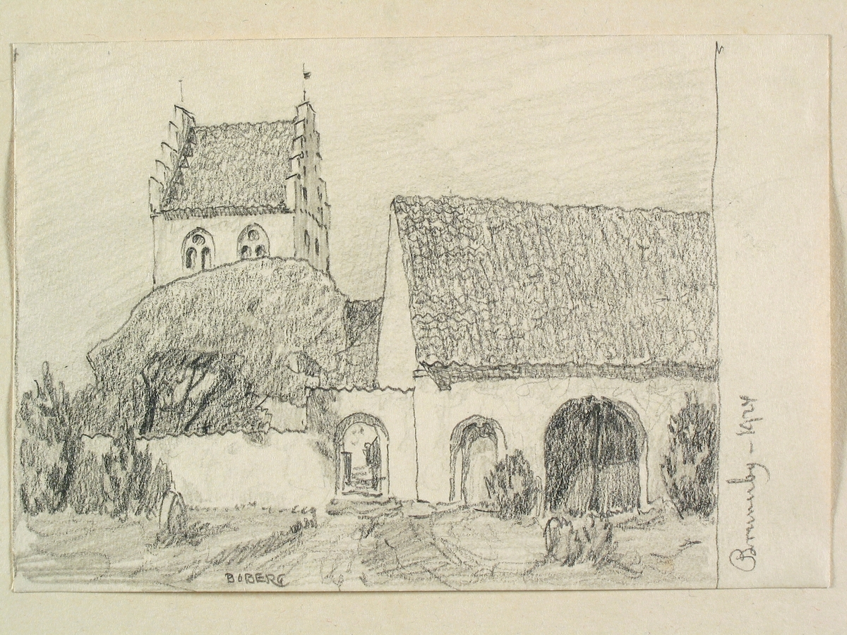 Teckning av Ferdinand Boberg. Skåne, Luggude hd., Brunnby kyrka