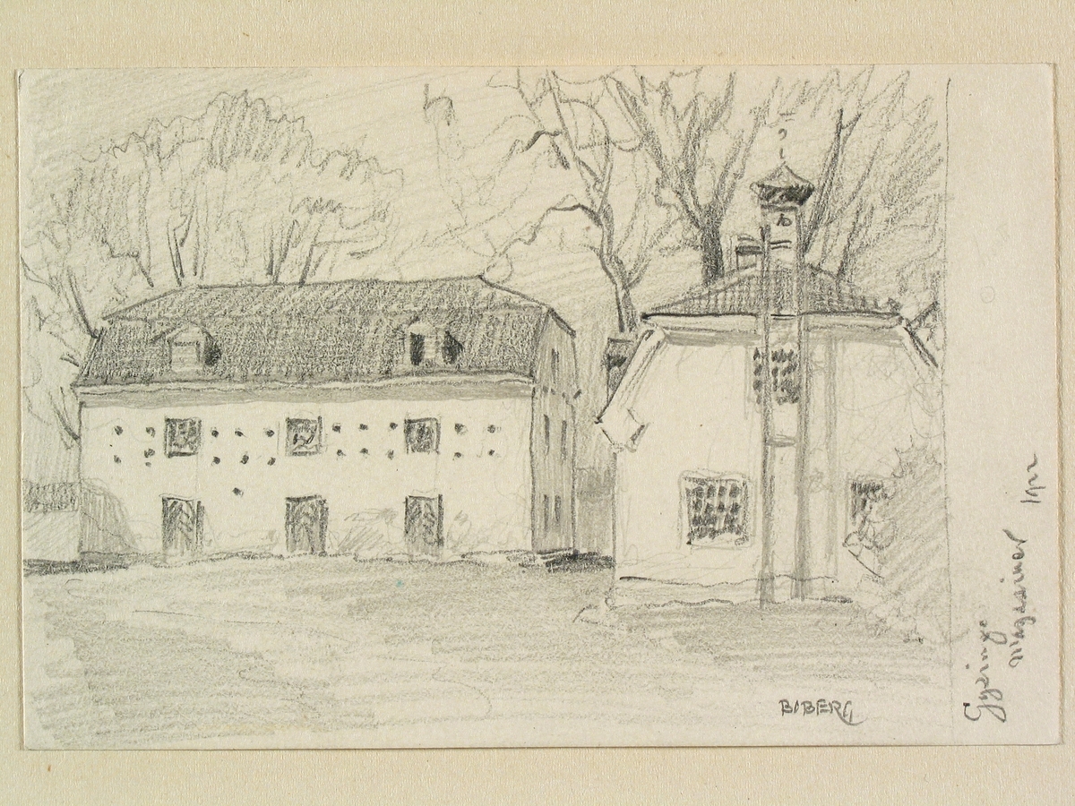 Gästrikland, Österfärnebo sn., Gysinge. Magasinsbyggnad. Teckning av Ferdinand Boberg.