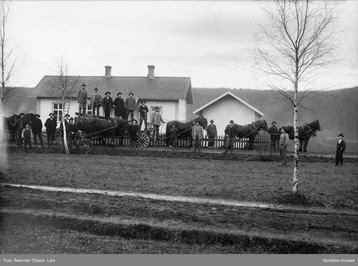 Vasastenen transporteras till Sälen 1903. Bilden tagen vid Husoms småskola