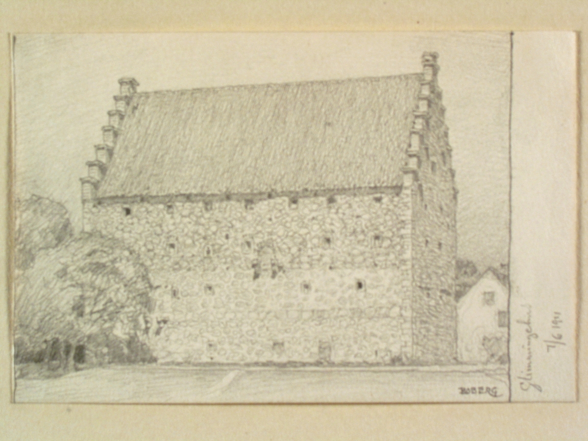 Teckning av Ferdinand Boberg. Skåne, Järrestads hd., Vallby sn., Glimmingehus