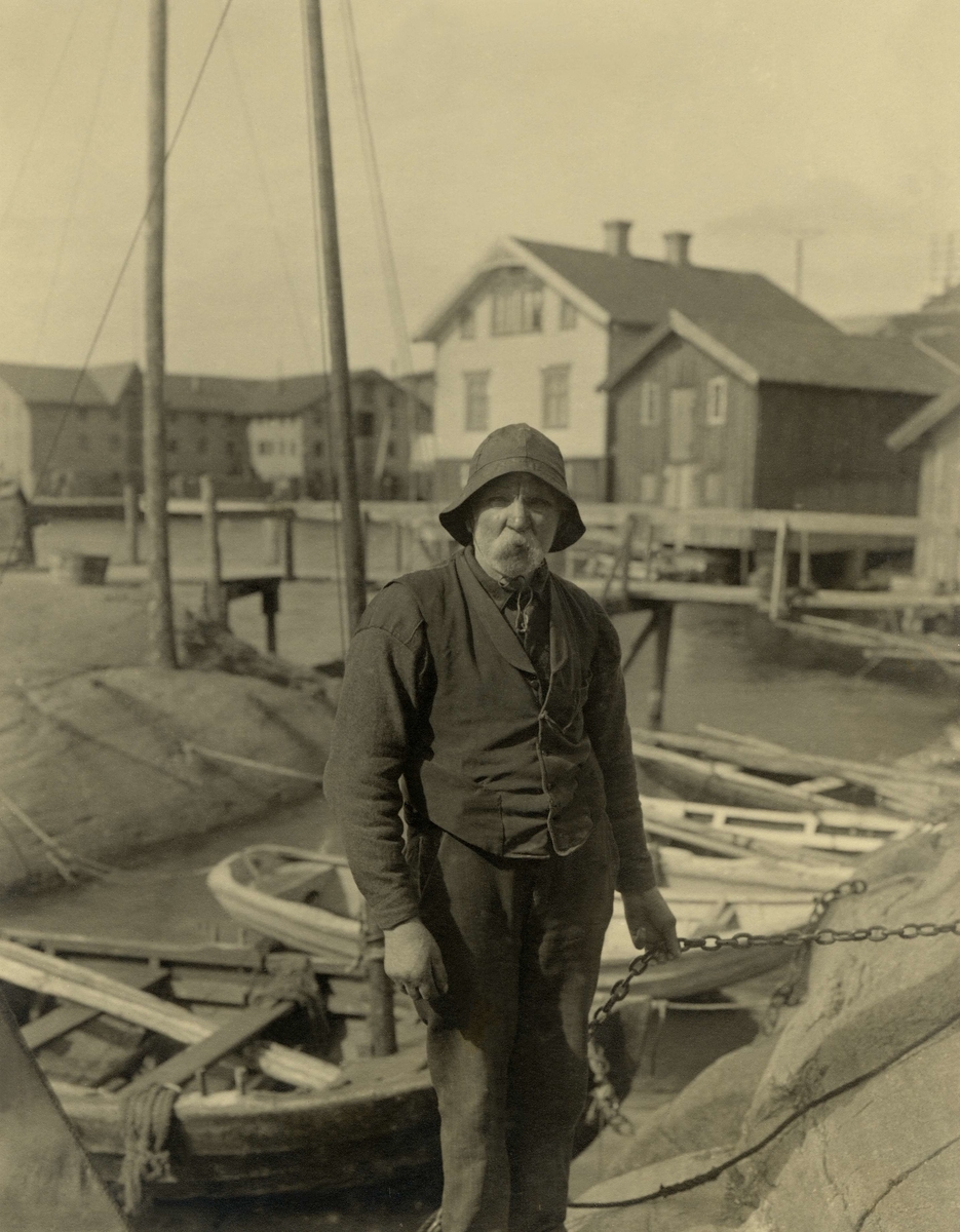 En gammal fiskare står nere på kajen. Smögen i Göteborg & Bohus län