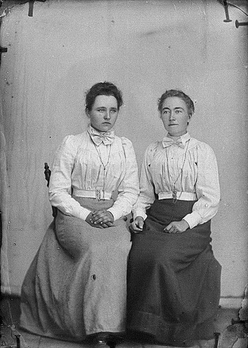Porträtt av två kvinnor. Sörsjön, Transtrand sn, Dalarna.