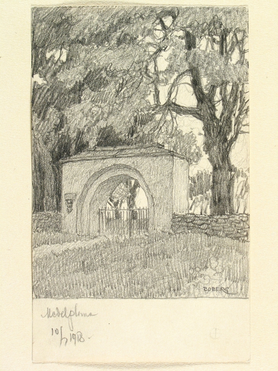Teckning av Ferdinand Boberg. Västergötland, Kinne hd., Mdelplana k:a