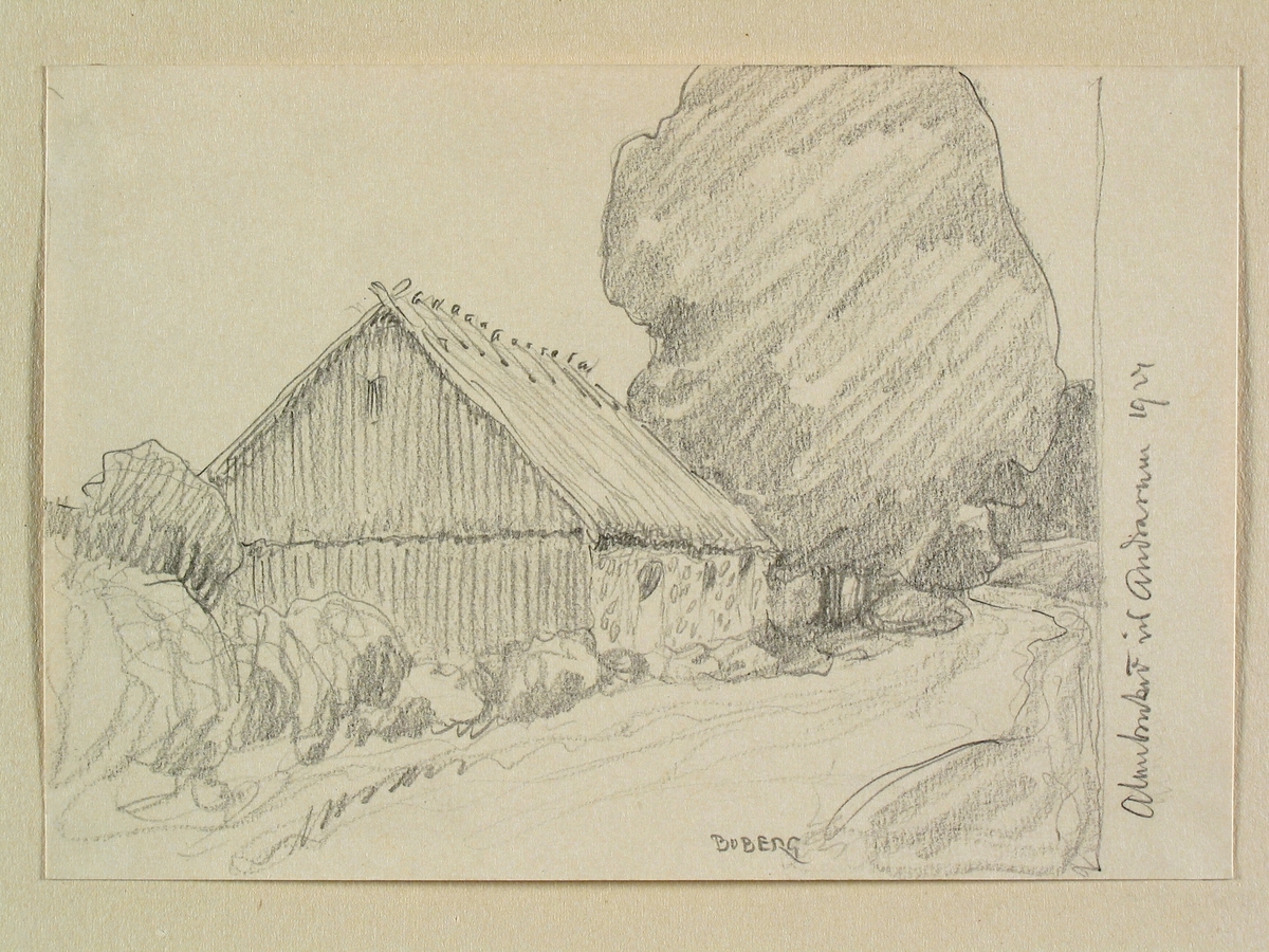 Teckning av Ferdinand Boberg. Skåne, Albo hd., Andrarums sn., Alunbruket