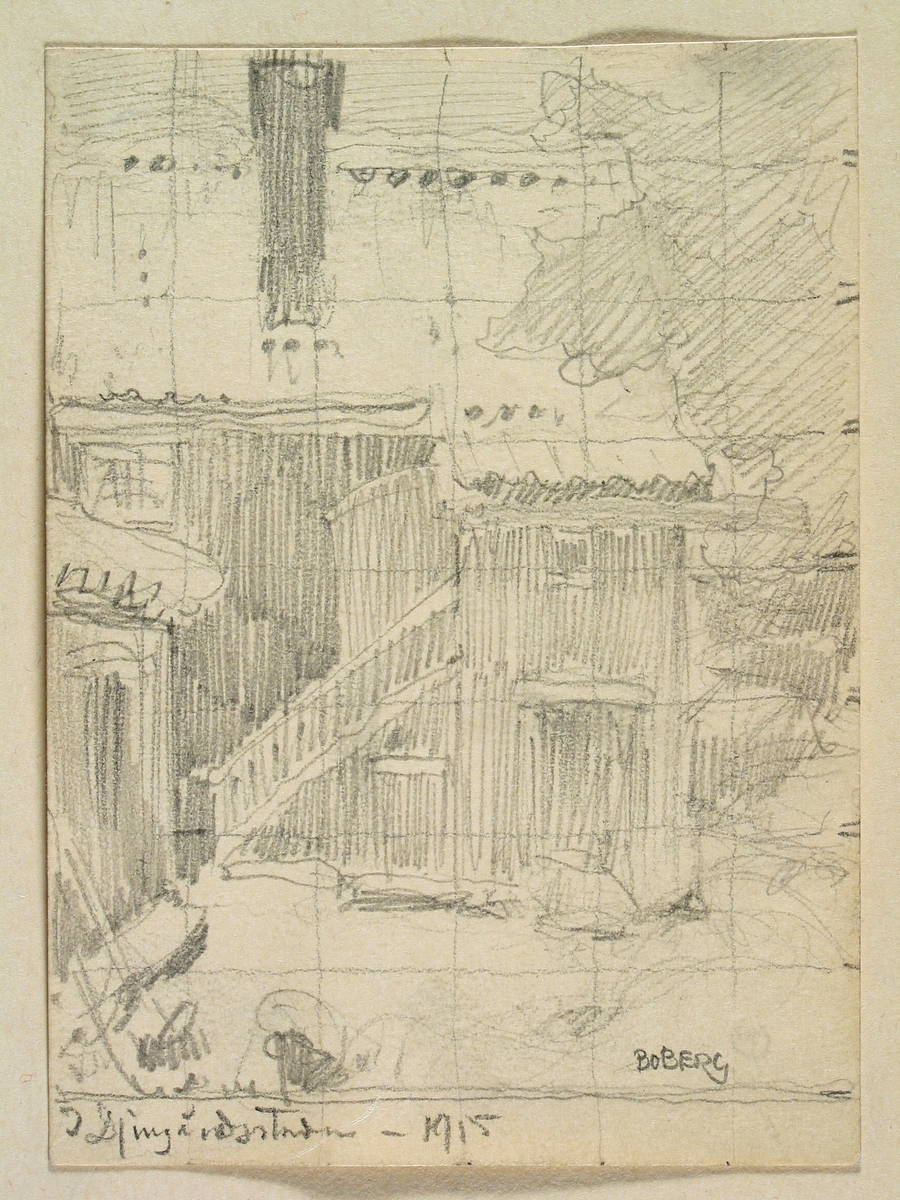 Teckning av Ferdinand Boberg. Stockholm, Djurgårdsstaden,