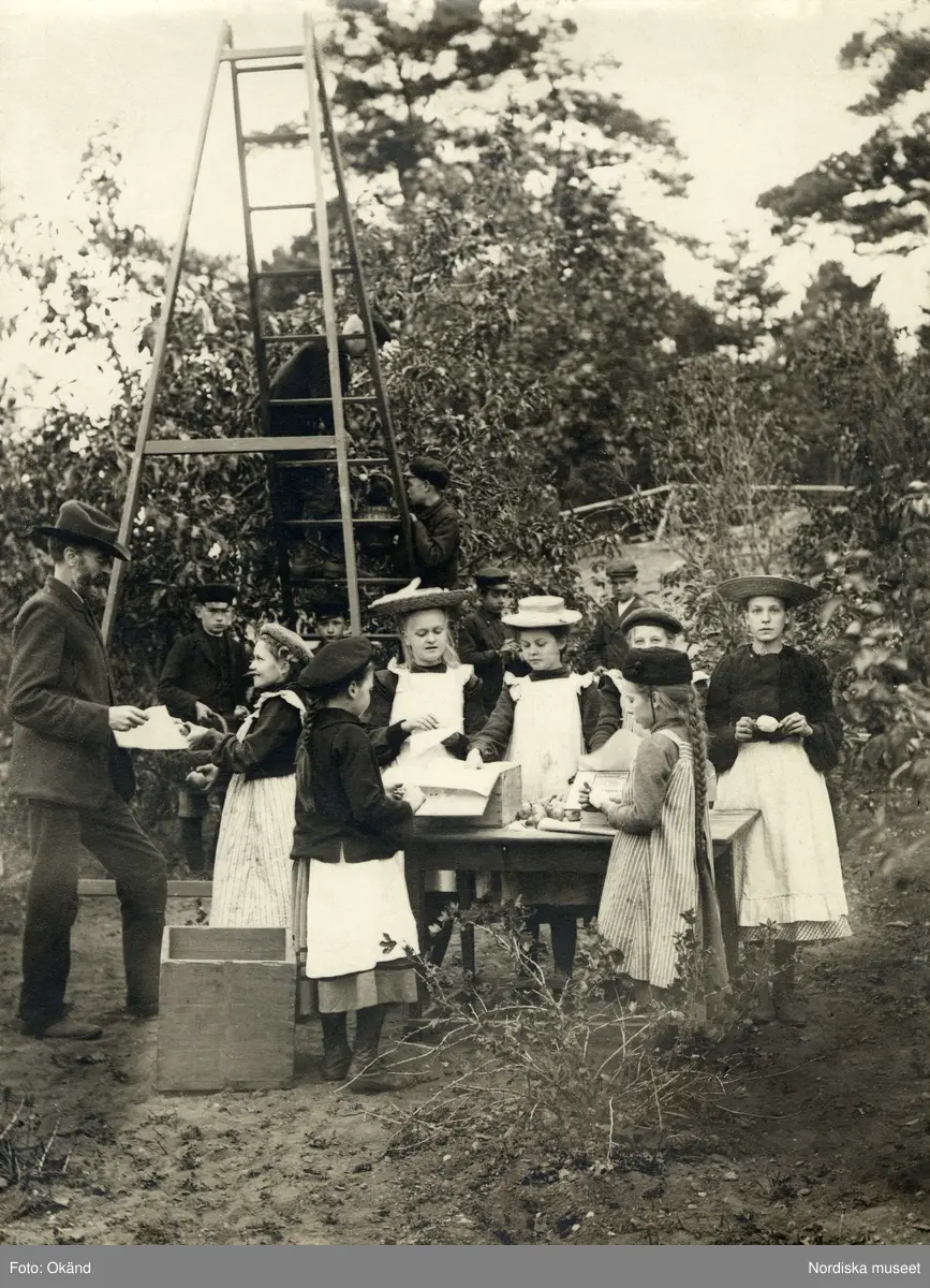 Fruktskörd i skolträdgården. Kyrkskolan, Nykvarn, Turinge, Södermanland