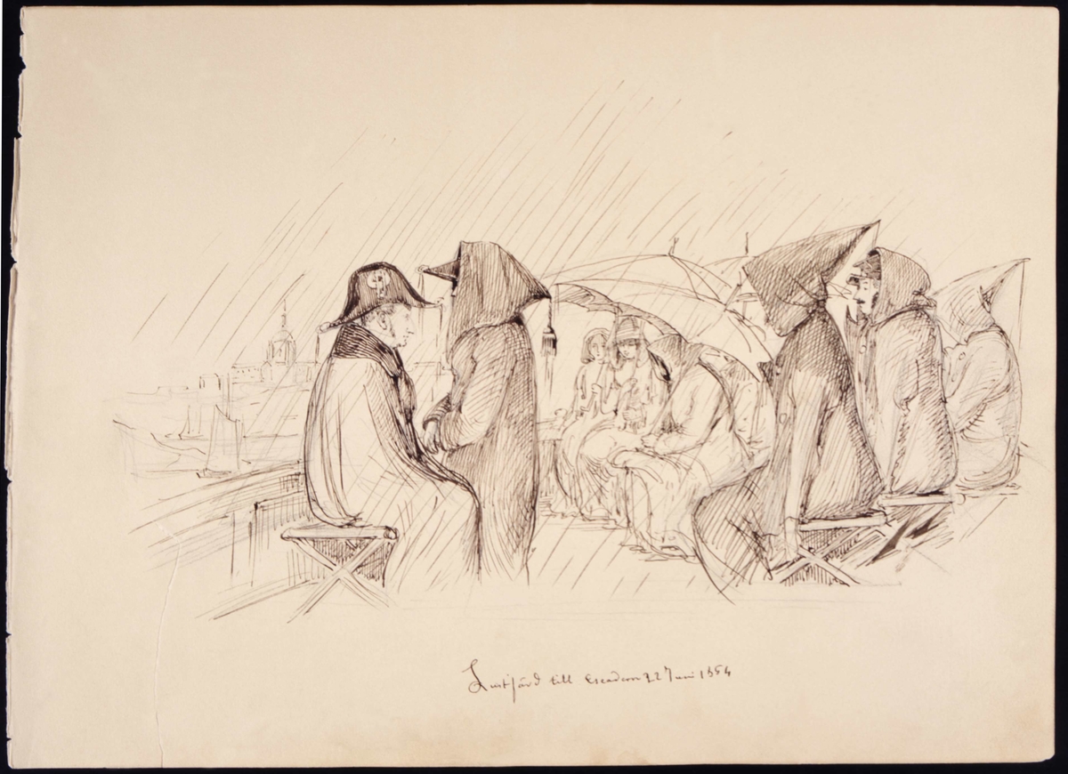 Titel: "Lustfärd till Eskadern 22 juni 1854". Tuschteckning av Fritz von Dardel