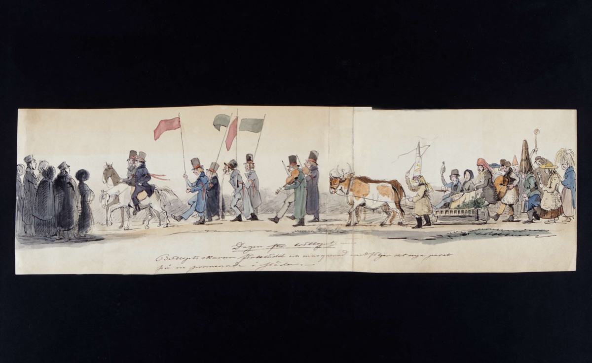 "Dagen efter bröllopet". Akvarellerad tuschteckning av Fritz von Dardel.