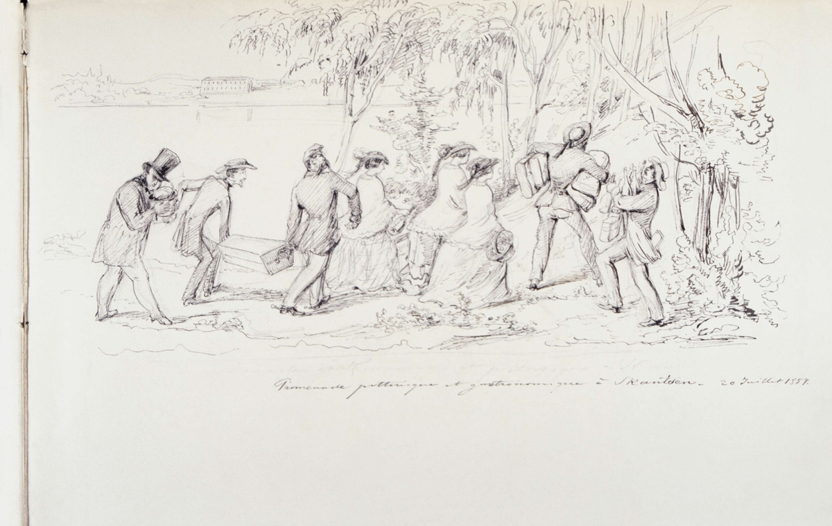 "Promenade pittoresque et gastronomique à Skantsen 20 juillet 1857. " Tuschteckning av Fritz von Dardel.