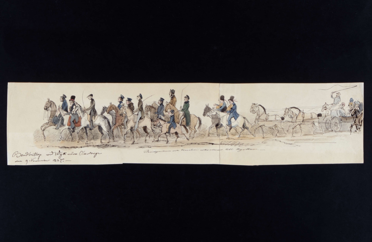"Bondbröllop vid Wijk nära Claestorp den 9 november 1837". Akvarellerad tuschteckning av Fritz von Dardel.