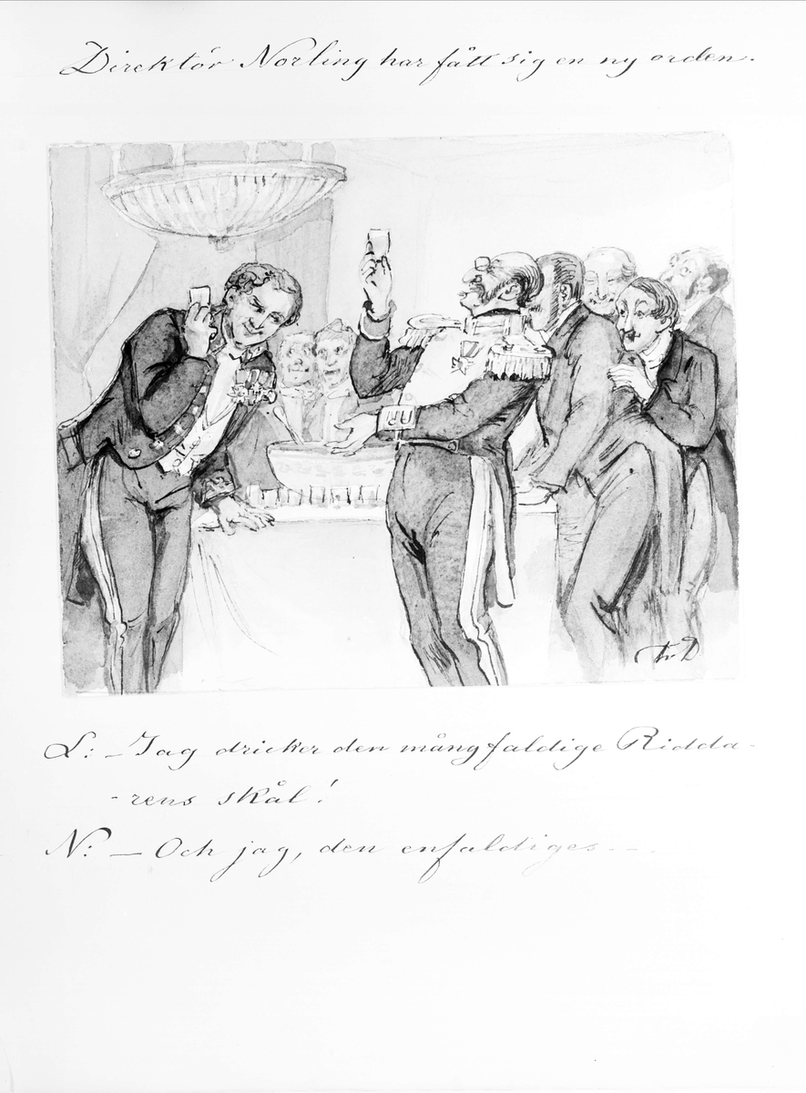 "Direktör Norling har fått sig en ny orden". Tuschteckning av Fritz von Dardel.