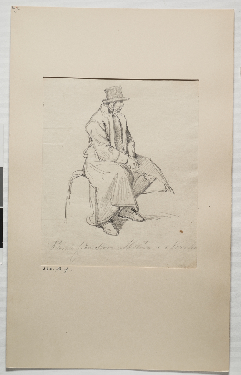Teckning av bonde från Stora Mellösa i Närke. Inv. nr: 57.341b.
