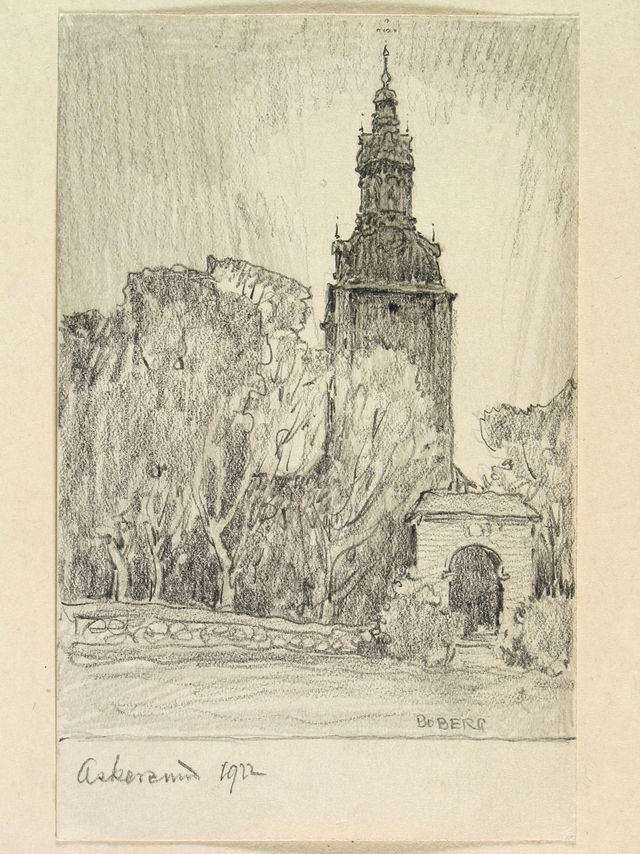 Askersunds landskyrka. Teckning av Ferdinand Boberg