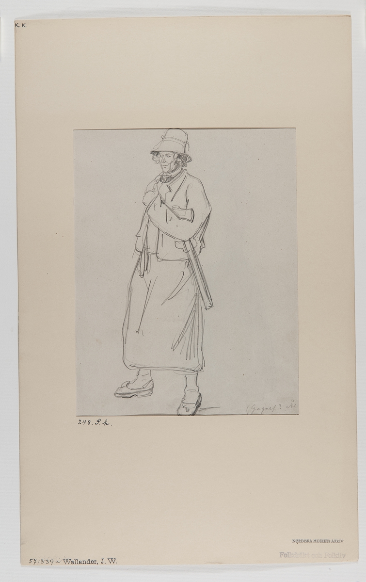 Handteckning av J W Wallander. Mansdräkt från Ål, Dalarna. Nordiska museets inventarienummer 57339i.