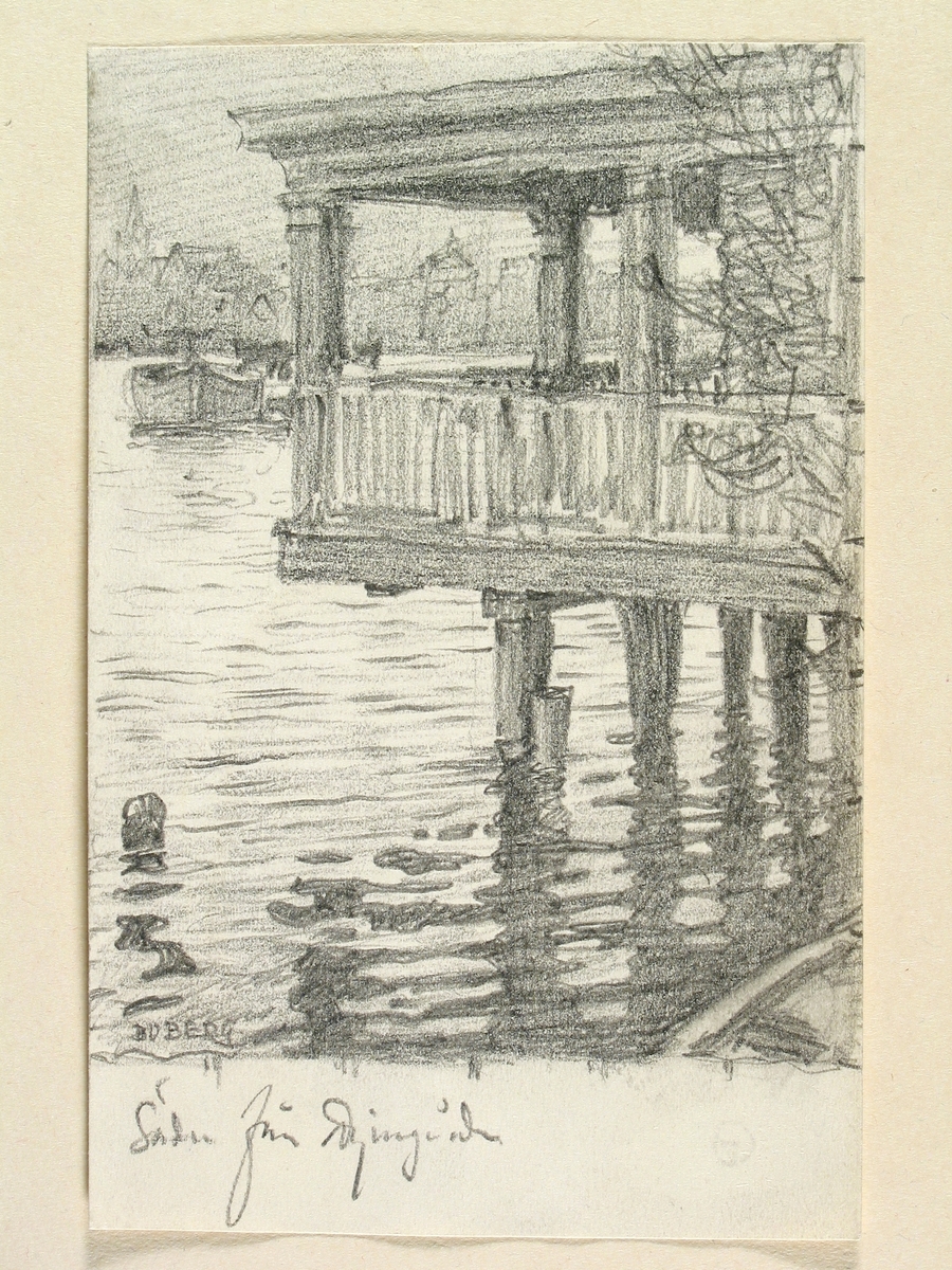 Teckning av Ferdinand Boberg. Stockholm, Söder, Från Djurgården