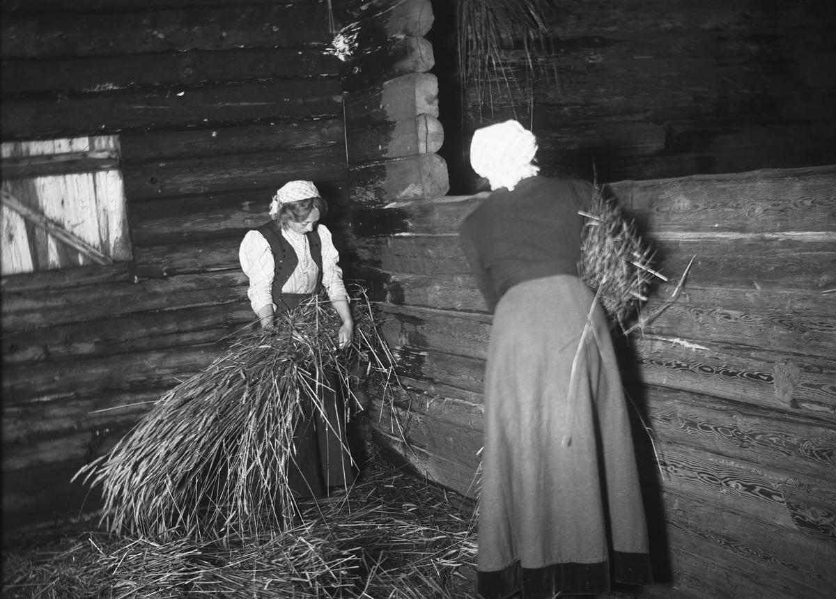 Väggslåning av råg i Bjurbäcken, Mangskogs socken, Jösse härad i Värmland.