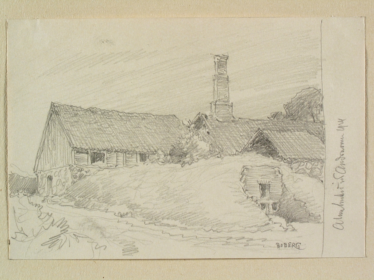 Titel: Teckning av Ferdinand Boberg. Skåne, Albo hd., Andrarums sn., Alunbruket