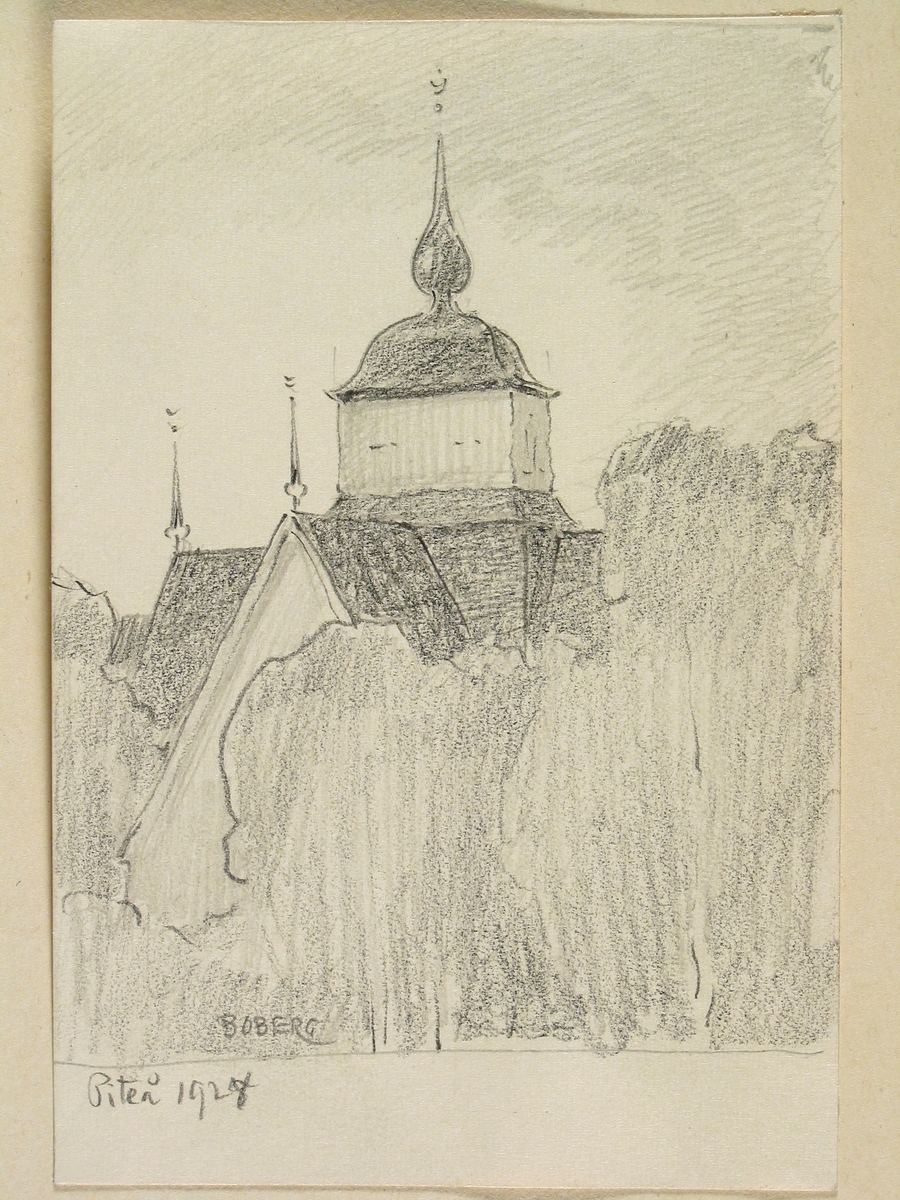 Teckning av Ferdinand Boberg. Piteå, Kyrkan