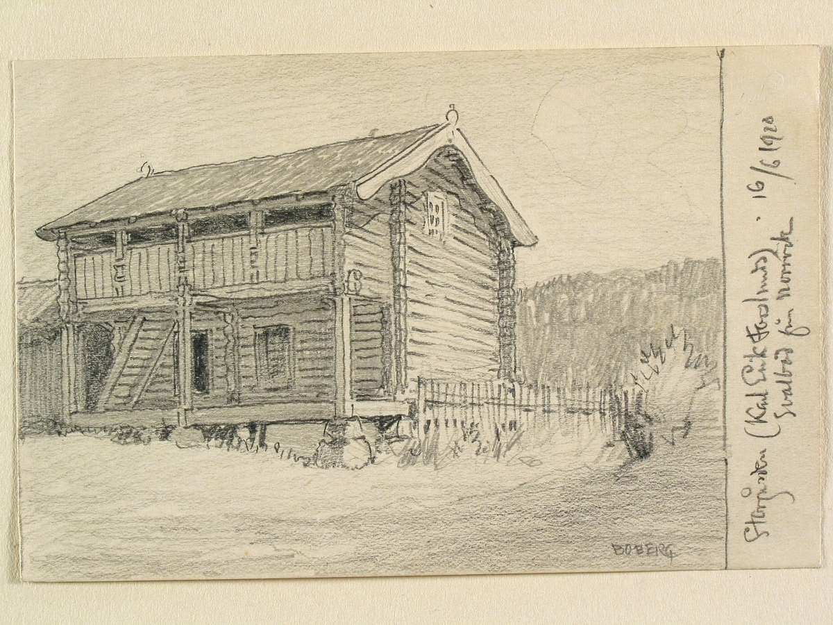 Dalarna, Ludvika sn. "Storgården (Karl Erik Forslund). Svalbod från Norrvik". Teckning av Ferdinand Boberg