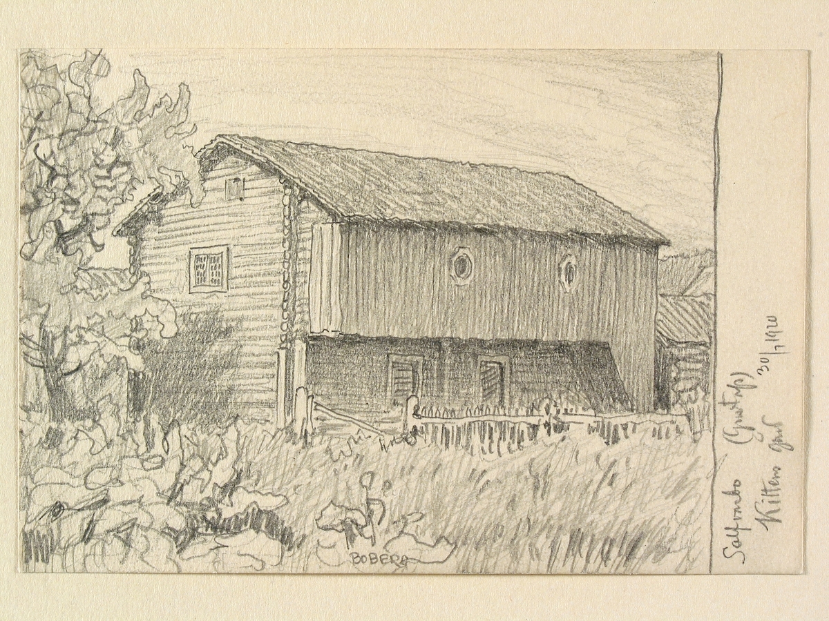 Dalarna, Gustafs sn., Solvarbo, Kittens gård. Teckning av Ferdinand Boberg