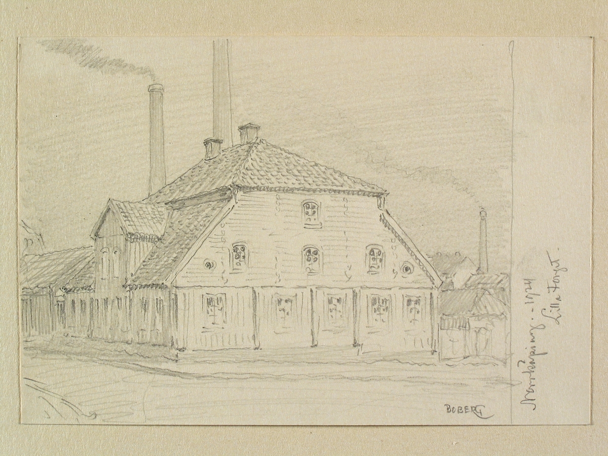 Teckning av Ferdinand Boberg. Norrköping, Lilla torget