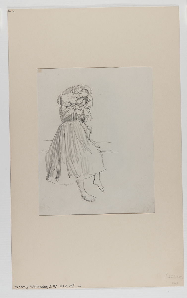 Handteckning av J W Wallander. Flickdräkt från Nås, Dalarna. Nordiska museets inventarienummer 57339g.